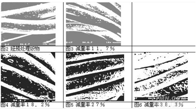 我們對不同減量率的織物進行電鏡觀察,并攝制電子顯微照片如圖2-6。?