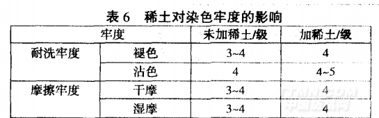 由表6可以看出加入稀土后,耐洗牢度和摩擦牢度均有所提高。
