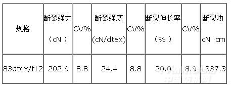 對83dtex/f12 的PLA 長絲在 單紗強力儀上進行測試( 測試標準:GB/T 9995-1997) ,測 試條件: