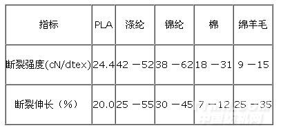 表2 PLA 纖維與其他纖維拉伸性能的對比