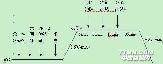 ③染色后處理: 70℃×10min水洗→90℃×15min皂洗→80℃×10min水洗→50℃×10min水洗→冷水沖洗→脫水(軋水)→烘干 ④純堿用量比較: