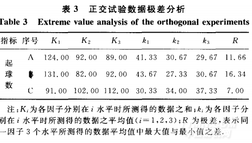 由表3和4可以看出,因素B對織物起球數的影響較為顯著,B2優于B1和B3,B3優于B1,這表明整理劑用量(o.w.f)是抗起毛起球整理中最主要的影響因素,但整理劑并不是用得越多越好;因素A也存在一定的影響,在顯著水平較大時,略微顯著;因素C不顯著,說明整理時間對抗起毛起球整理效果的影響不是很明顯,所以因素主次順序為B>A>C.其中,A2和A3相差不大,C1,C2和C3的差別也較小,從節省時間資源成本角度考慮,可選擇A2,C1.綜合這3個因素,選擇最佳工藝參數為A2B2C1,即整理溫度為40℃,整理劑用量(O.w.f)為4,整理時間為20min.按照此_丁藝參數對納米抗菌針織物進行整理,并參照起毛起球評級標準進行評級,試驗結果如表5所示.
