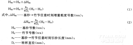 式中:△Hs2i——竹節(jié)→基紗任意時(shí)刻減量粗度號(hào)數(shù)(tex);