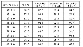 表1 MYCH-151用量及常規(guī)染色方法對(duì)上染率的影響/%