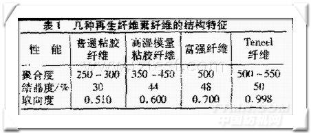 纖維結構上的差異必然會反映在性能上,表2所示是幾種再生纖維素纖維的物理機械性能。