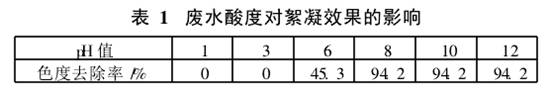 在上述最佳投藥條件下,改變廢水pH值,觀察絮凝體系對其的處理效果,結果見表1。