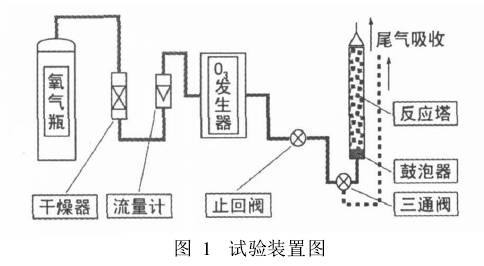 儀器 CF-98-10臭氧發生器(江蘇省海門市康達臭氧凈環保設備廠,設備參數:電源電壓220V,臭氧產量10 g/h,臭氧濃度50 mg/h,氧氣輸入量160 L/h,氧氣輸入壓0. 05~0. 10 mPa,功率150W),氧氣瓶及減壓閥(成都拓展氣體公司),臭氧反應器(吸收瓶、冷凝管改制),GDYS-20恒溫消解器(長春吉大小天鵝儀器有限公司),PHS-25 pH測試計(上海精科雷磁公司),723分光光度計(上海精密科學儀器公司), 7502型紅外快速干燥器(江蘇電器二廠)等。