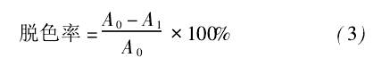 用723型分光光度計分別測試印染廢水臭氧處理前后在最大吸收波長處的吸光度A0和A1,式(3)計算脫色率/%:
