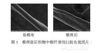 由圖1可知,棉纖維經整理后表面形成一層致密且較均勻的含氟聚丙烯酸酯膜,該膜包裹在纖維表面,使纖維具有拒水性.