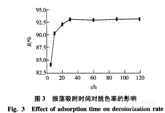 2.3振蕩吸附時(shí)間對(duì)吸附效果的影響