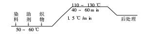 滌綸針織物(5g)→浸濕→擠干→染色(染料,磷酸二氫銨2g/L,擴散劑NNO1g/L)→熱水洗→皂洗(皂粉2g/L,溫度95℃×5min)→熱水洗→冷水洗→熨干
