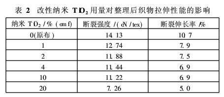 整理織物的斷裂伸長率和斷裂強度見表2。