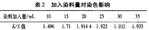 表2是染料與柞蠶絲織物K/S值的關系。(其中染浴pH=5,染色溫度為70℃,保溫時間60min)。