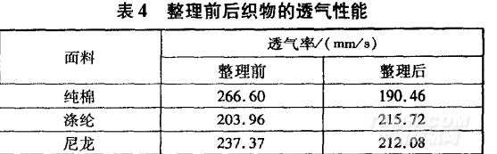 EzGard EG 8610整理前后,織物透氣性能的變化 如表4所示。