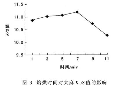 2.3 焙烘時(shí)間對(duì)大麻K /S值的影響