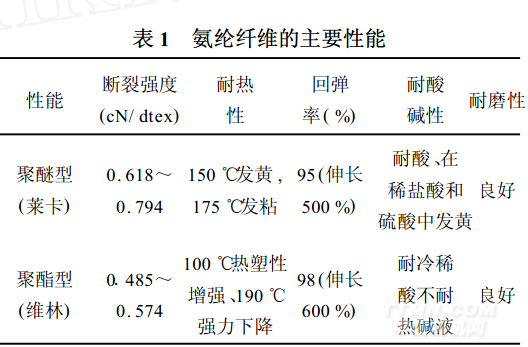 1 氨綸纖維的主要性能