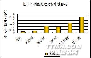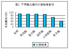 棉纖維初生胞壁的雜質中,纖維素占的比重最大,(約54%), 因此單獨用纖維素酶對提高潤濕性有一定作用,但不明顯。原因是果膠質作為粘合劑將其它雜質粘合起來,不連續(xù)地覆蓋在纖維表面,使得纖維素酶難以充分接觸纖維素雜質。單獨使用果膠酶,也不能改善潤濕性,可能因為果膠質也分布在非纖維素成分的下面,果膠酶難以接近。纖維素酶與果膠酶混合處理,產生增效作用,可能因為通過纖維素酶對纖維素雜質的部分水解,促使果膠酶接近果膠質。果膠質的水解,既有助于纖維素酶的進一步作用,又有助于解除其它雜質成分之間的附著力,使雜質脫離纖維母體,從而提高了織物的毛效。試驗結果還表明,復合生物酶處理,達到同樣效果,各組分酶的用量小于單一組分的用量,同時對織物重量損失小,從而強力損失小。因此,復