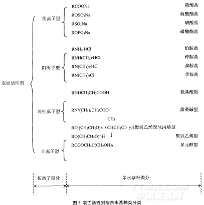 表面活性劑按親水基分類,詳見圖5。