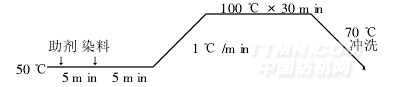氨綸含有聚氨基甲酸酯結構,染色方法與錦綸相似,對酸性染料、分散染料具有較好的親和力,染淺色時可采用低溫型分散染料ALE,在低張力溢流染色機內進行。該染料勻染性好, 100℃即可染色[4]。