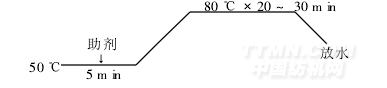 (4)染色后,不可即刻用冷水降溫,應(yīng)先自然降至85℃,然后開冷水管小流量慢慢降溫至70℃以下,再以開大水量降溫沖洗。否則,易出現(xiàn)皺痕、折印。