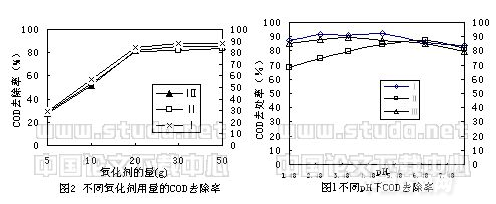 從表1數據說明,二氧化氯氧化模擬染料廢水處理效果穩定,但CODCr去除率較低,且對三種不同的染料廢水沒有明顯差異。