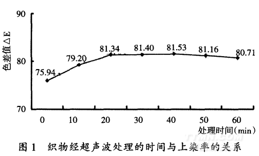 織物經超聲波處理的時間與上染率的關系見圖I。