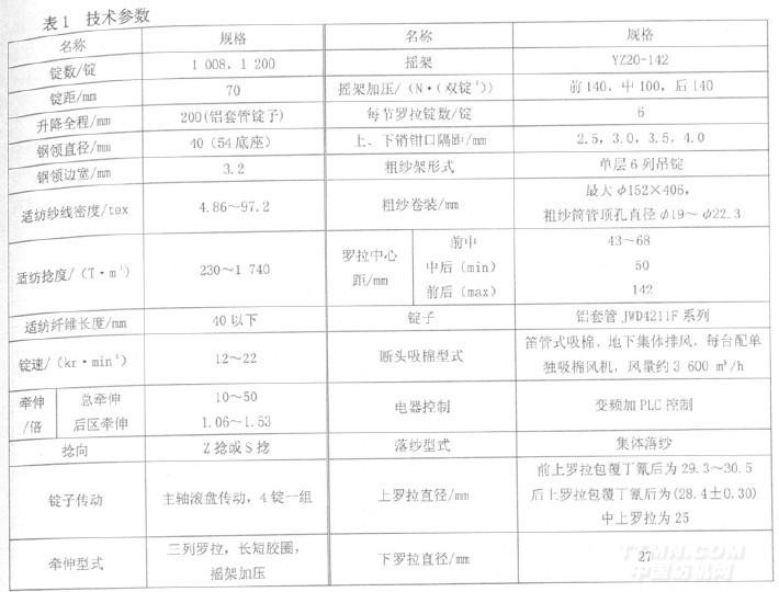 關鍵詞:F1520型細紗長車;技術參數;結構特點;設備維護;集體落紗;R 9.8tex紗;千錠時斷頭;成紗質量。