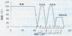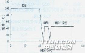 圖1 傳統(tǒng)氧漂及水洗工藝氧漂及過氧化氫酶凈洗工藝曲線如下所示:
