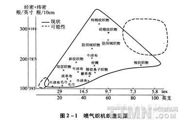 噴氣織機(jī)織造范圍見圖2—1。噴氣織機(jī)織物分類見表2—1。