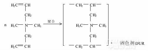 用帶有季銨鹽的烯烴,如單烯丙基二甲基氯化銨和二烯丙基二甲基氯化銨(DMDAAC)聚合而成高聚物(均聚物、或與其它單體共聚的共聚物).借助陽離子基團及成膜而達到固色目的.例如北京油田化學公司的固色劑CS、涌立化工公司的固色劑RF、上海助劑廠的固色劑DUR即屬此類共聚物.