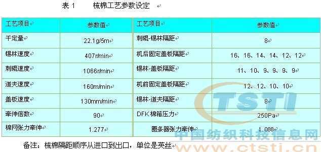 TC5-1梳棉機配備了高精度自調勻整系統,對長短片段的棉層不勻進行控制,從而明顯改善了生條長、短片段的重不勻和條干不勻。梳棉工序,采取“中壓力,中定量、中速度、小隔距、少回收、小張力”的工藝原則,為了減少纖維損傷,提高纖維轉移,適當縮小了錫林和