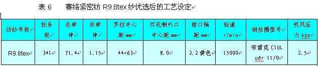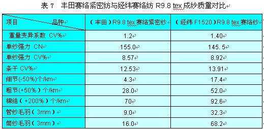 賽絡緊密紡與賽絡紡R9.8 tex成紗質量比較(見表7)