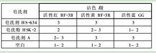 表4不同皂洗劑對染色純棉針織物防沾色性能的影響