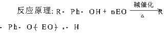 將烷基化好的苯酚加入2500立升的不銹鋼反應釜,加入片堿3公斤(溶于30公斤水中),升溫真空脫水,脫畢,氮氣置換兩次,加入850公斤環氧乙烷,至濁點70±3℃(清水濁度),則可停止通環氧乙烷,冷卻后即可。