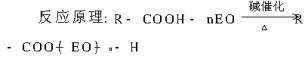 經研究,生產工藝如下:在2500立升反應釜中加入硬脂酸525公斤,加入6公斤KOH(溶于30公斤水中),加熱,抽真空,脫去水份,用N2置換2次,用N2壓入480公斤環氧乙烷,在140℃左右反應2~3小時,反應后,在120℃用6公斤HAC中和KOH,80℃時加入6公斤H2O2漂白脫色即可。