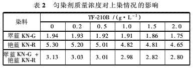 從表4知,試樣的染色色光及強度比較接近,說明勻染劑市場樣及TF-210B對染色色光和強度均無明顯影響。