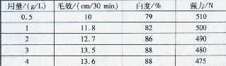 表4精練漂白劑用量對(duì)練漂效果的影響