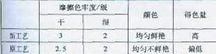 由表5知,用新工藝練漂的莫代爾/棉?昆紡針織物染色均勻、顏色鮮艷、得色量高,色牢度達(dá)到客戶的要求,解決了原工藝染色不鮮艷得色量低的問(wèn)題。