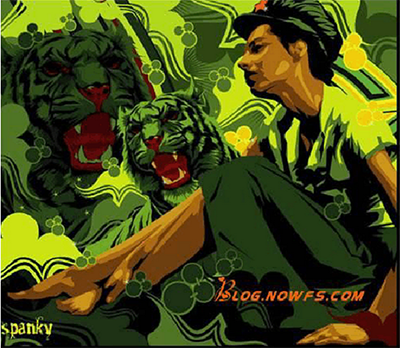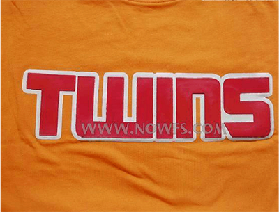 厚板漿是源于膠漿的基礎上,它就好像是膠漿反復地印了好多層一樣,它能夠達到非常整齊的立體效果,一般來說工藝要求比較高,所以一般印花小廠是印不好的,有的連這個技術都沒有,更別說印好了,可是它卻是目前風靡全球的印花手法!一般適宜用在比較運動休閑型的款上,圖案方面一般采用數字、字母、幾何圖案、線條等,線條不宜太幼。也有 人別具一格用來印花卉圖案,見于秋冬裝皮料或較厚的面料上。