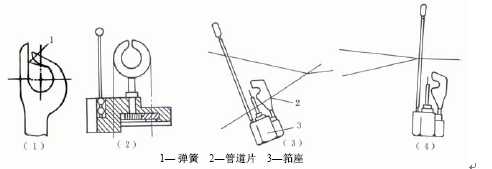 管道片噴氣引緯仍使用普通鋼筘(ordinary reed)進行打緯,由許多管道片按一定的間隙扎制成的通道用于引導緯絲與氣流的通道。如圖2-18(3)所示,引緯時,管道片2隨筘座3運動進入梭口,引導緯絲與氣流。如圖2-18(4)所示,打緯時,管道片2隨筘座3運動退出梭口。