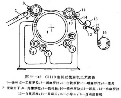 日前開松機主要采用C111B型回絲梳麻機。如圖9—42所示。