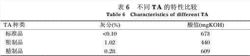 采用兩種不同的方法處理0min堿減量廢水:一種酸析前進(jìn)行絮凝脫色(3#),得到TA精制品;另一種直接酸性,酸性得TA粗制品。將兩種TA與標(biāo)準(zhǔn)品TA相比較,如表6所示:精制TA較粗制品灰分降低72.5%,酸值提高38.4%,而純度提高了12.9%。說明酸性前廢水預(yù)處理的脫色絮凝作用對改善TA制品的特性效果明顯。精制品的各項(xiàng)指標(biāo)已接近商品TA。圖1中三種不同TA的紅外圖譜也證明了這一點(diǎn)。