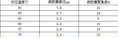 由實驗結果可知,采用60℃的乳化溫度時,形成的乳化液較為穩(wěn)定,微膠囊直徑較小,微膠囊直徑分布較為均勻。