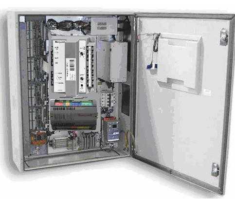 霍尼韋爾節能優化控制系統與現有運行中的紡織空調的連接非常方便,仍然保留原先的人工調節方式,做到節能優化控制系統和原先的人工調節方式無擾動自由切換。節能優化控制柜只需掛裝在空調室內,同風機變頻器和風閥執行器直接相連,同時與室內外的溫濕度和焓傳感器相連。