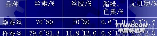 (二)脂蠟、色素、無機物和碳水化合物 脂肪:來自蛹體,主要成分是脂肪酸的甘油脂 蠟質:大部分集中在靠近絲素的絲膠層里,主要成分為蜂蠟酸等高級酯類 色素:淺黃到淡褐或深褐色,多為黃酮類和胡蘿卜類,大部分存在于絲膠,隨絲膠的去除而去除無機物:鈣、鎂、鈉和鉀的氧化物或鹽類存在于蠶絲中,主要存在于絲膠中,少量則存在于絲素中 碳水化合物:主要成分為葡萄糖及其衍生物,主要存在于絲膠中,少量存在于絲素中。部分碳水化合物具有纖維素結構,呈微細的纖維狀,亦稱微茸,影響蠶絲織物的外觀質量,并使產品的色澤和鮮艷度降低。