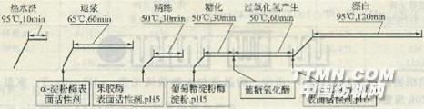 織物: 330g液量: 1OL可溶性淀粉(試劑): 5g/Lα-淀粉酶(超濃):1Og/L果膠酶(SP249):1Og/LGA(AMG): 1g/LGOD(Nogase生化學): 0.1g/L過氧化氫活性劑(Prestogen sP): 5g/L表面活性劑(Emulguml08): O.5g/LpH值: 5醋酸: 1g/L醋酸鈉: 4.5g/LpH值: 5~7碳酸鈉: 2.5g/L使用機械: 回轉釜染色機(Texsam技研)圖3—17 酶漂白工藝流程