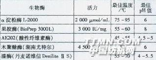 0 前言 亞麻/棉織物綜合棉和亞麻兩種織物的優點,克服了棉織物尺寸穩定性差和亞麻織物彈性差、易折皺的缺點,具有理想的服用性能。傳統的亞彬棉織物退漿、煮練大多采用強堿高溫、次氯酸鈉漂白,雖然能獲得很好的毛效和白度,且有效地去除麻皮,但需要消耗大量化學試劑、能量、水以及時間,而且氯漂對環境有污染。因此,尋求一種綠色工藝以替代該類織物的高溫強堿前處理工藝,其社會和經濟效益顯著。 利用酶的高效性、專一性和溫和的反應條件,以及對環境無污染的特點,以替代傳統的堿退漿、煮練,可省去氯漂工序,降低廢水中的COD、pH值和色度等,減少對纖維的損傷,實現亞彬棉紡織產品前處理的清潔化和產品的高檔化。本課題通過各種試驗,確立了酶工藝。1試驗1.1材料 織物53.6/53.6,49/46,亞彬棉(55/45)織物。 酶制劑(見表1)。 化學試劑NaOH(100%,固態),H202(30%),硅酸鈉(固態),Na2CO3,EDTA,碘,碘化鉀,尿素,硼酸,硫酸,乙醇,過硫酸鉀,亞硫酸鈉,磷酸三鈉,次氯酸表1生物酶制劑的種類