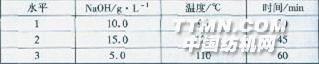 1 試驗1.1試驗材料和設(shè)備 超細(xì)纖維Superpol經(jīng)編毛圈針織物(350 g/m2),滌錦(77/23)復(fù)合剝離型超細(xì)纖維(DTY長絲,36.7 tex/144 fX9p);氫氧化鈉(AR);XS-212-103型顯微鏡,HS-12型高溫小樣機,YG701H型織物縮水率實驗機,EL-400型立體氣動式小軋車,BS 110S型電子分析天平,LFY-215型織物毛細(xì)效應(yīng)儀,LFY-201D多功能織物強力機等。1.2試驗方法1.2.1試驗設(shè)計 為研究開纖工藝中氫氧化鈉濃度、溫度、時間三因素對開纖效果的影響,設(shè)計了燒堿、溫度、時間三因素三水平的L9(33)正交試驗。表1正交試驗因素水平表