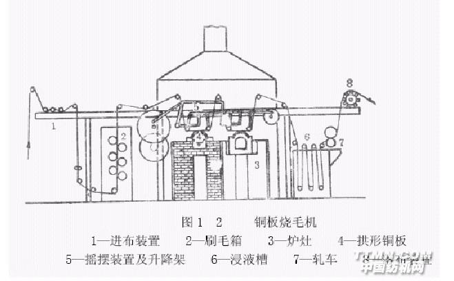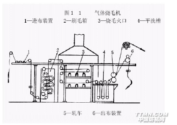 氣體燒毛機對各種紡織物都適用,對凹凸提花織物效果尤其好,燒毛質量比較勻凈,火焰易控制。氣體燒毛機工作時對室溫影響較小,準備工作時間短。熱板燒毛機需提前約1h點火,將金屬板或圓筒燒到紅熱,才能開始燒毛。銅與鑄鐵等金屬材料在紅熱條件下容易被空氣中的氧氣氧化,耗損較大。氣體燒毛機由進布裝置、刷毛箱、燒毛火口、滅火裝置組成。氣體燒毛機的主要部件是燒毛火口,通常使用狹縫式火口,這種火口使用歷史較早,目前仍在使用。火口是一狹長的鑄鐵制小箱體,箱內是可燃性氣體和空氣的混合室,小箱上部有一條狹縫,是可燃氣與空氣混合物的出口,稱為噴口,噴口寬度一般為0.5~0.8mm,與所用可燃性氣體的燃燒速度有關,燃燒速度快的,噴口可狹些,反之,噴口要寬些。為了適應織物布幅的寬窄變化,火口兩端可用壓板或高壓空氣或其他行之有效的方法調幅,使火焰噴射寬度適應于燒毛織物寬度,以免浪費可燃氣。舊式燒毛機火口火焰溫度較低(一般700~800℃),常采用多火口燒毛的方法,以提高燒毛質量。但經長期實踐觀察,燒毛火口的火焰溫度對燒毛質量有顯著影響,提高火焰溫度,不但可以燒毛凈,還可以提高車速。現在改進火口措施主要有下列幾種方法:①輻射式火口:在火口上加裝異形耐火磚,使混合氣出噴口后在耐火磚小腔內燃燒,耐火磚是高溫載體,可以聚集熱量,提高燃燒溫度,強化燃燒過程(可達1300~1400℃)。②多維火口:如國產SPS-II型雙噴射火