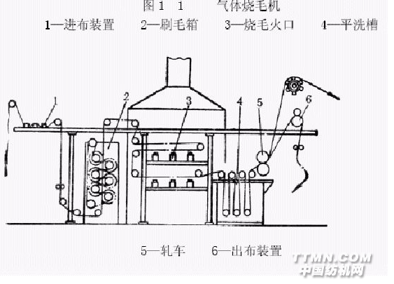 紗線紡成后,雖然經過加捻并合,仍然有很多松散的纖維末端露出在紗線表面,織成布匹后,在織物表面形成長短上一的絨毛。布面上絨毛影響織物表面光潔,且易沾染塵污,合成纖維織物上的絨毛在使用過程中還會團積成球。絨毛又易從布面上脫落、積聚,給印染加工帶來不利因素,如產生染色、印花疵病和堵塞管道等。因此,在棉織物前處理加工時必須首先除去絨毛,現一般均采用燒除的方法。